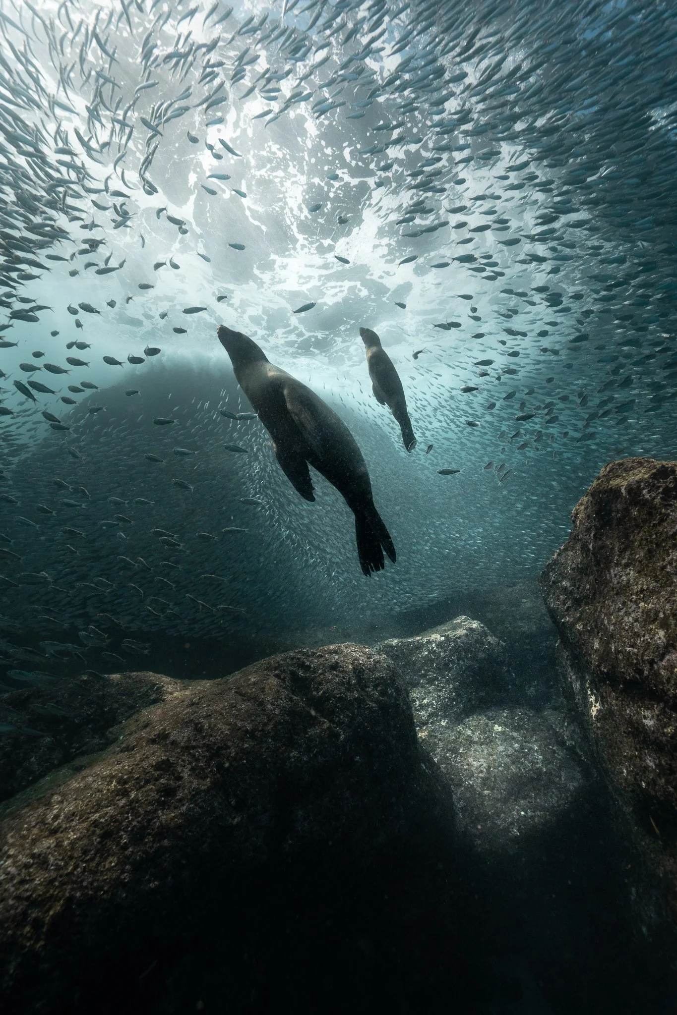 Dos buceos dentro del PN de Espíritu Santo donde podrás visitar barcos hundidos, colonias de cientos de lobos marinos y arrecifes llenos de vida mundialmente reconocidos.